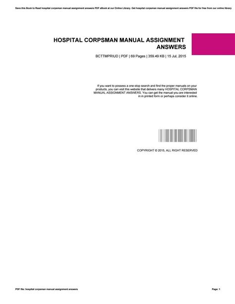 Download answers to corpsman manual assignments PDF online is a convenient and frugal way to read answers to corpsman manual assignments you love right from the comfort of your own home. Yes, there sites where you can get PDF "for free" but the ones listed below are clean from viruses and completely legal to use.